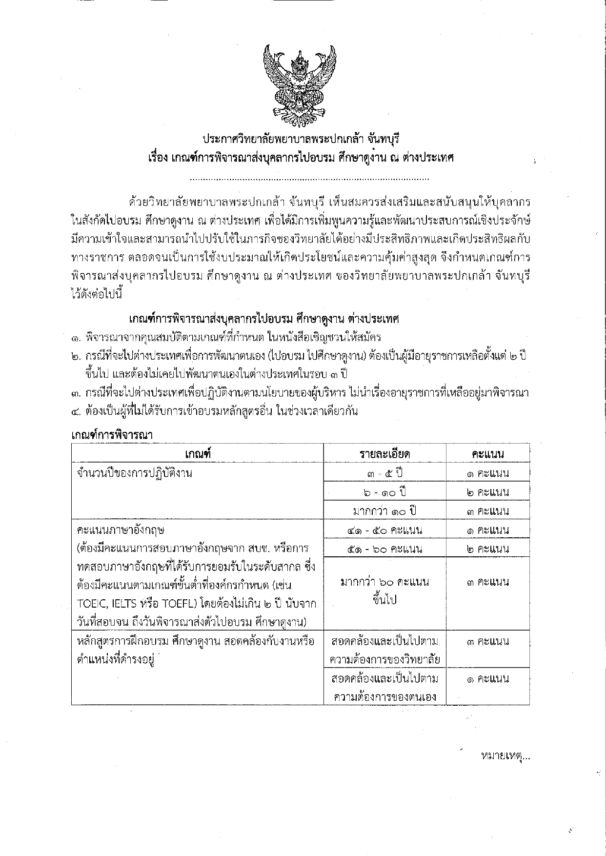 เกณฑ์การพิจารณาส่งบุคลากรไปอบรม ศึกษาดูงาน ณ ต่างประเทศ