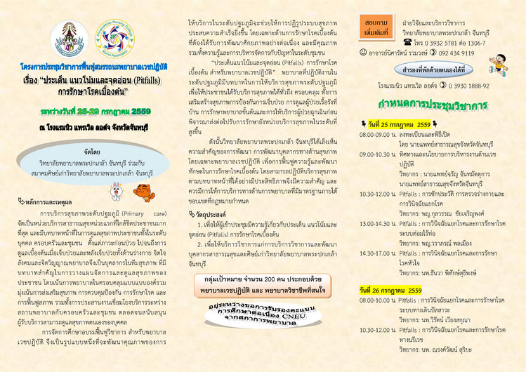 วันที่ 25 - 29 กรกฎาคม 2559 ณ โรงแรมนิว แทรเวล ลอด์จ จังหวัดจันทบุรี |
