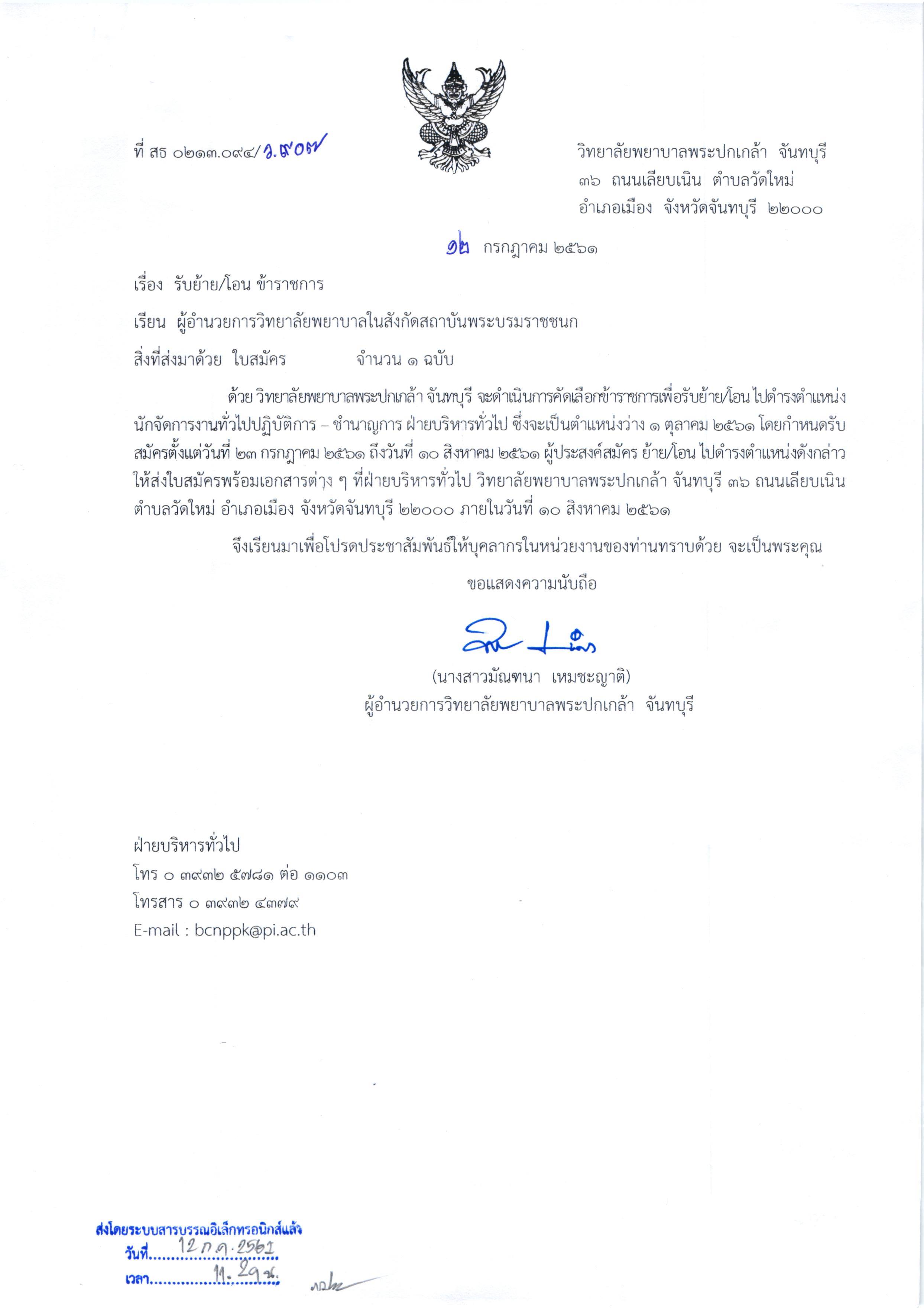 รับย้าย/โอน ข้าราชการ ตำแหน่งนักจัดการงานทั่วไป