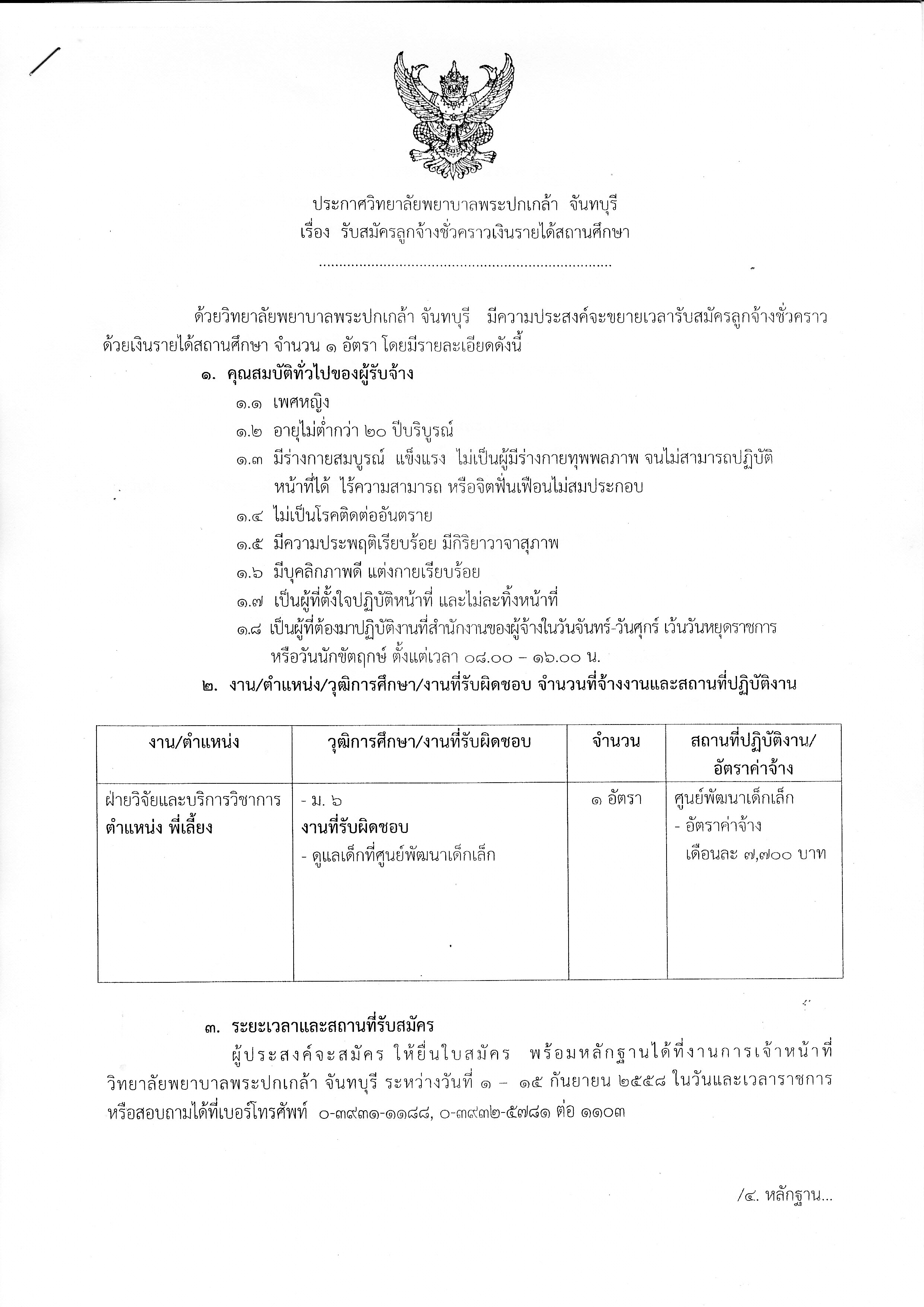 ประกาศรับสมัครลูกจ้างชั่วคราวเงินรายได้ฯ ตำแหน่งพี่เลี้ยง